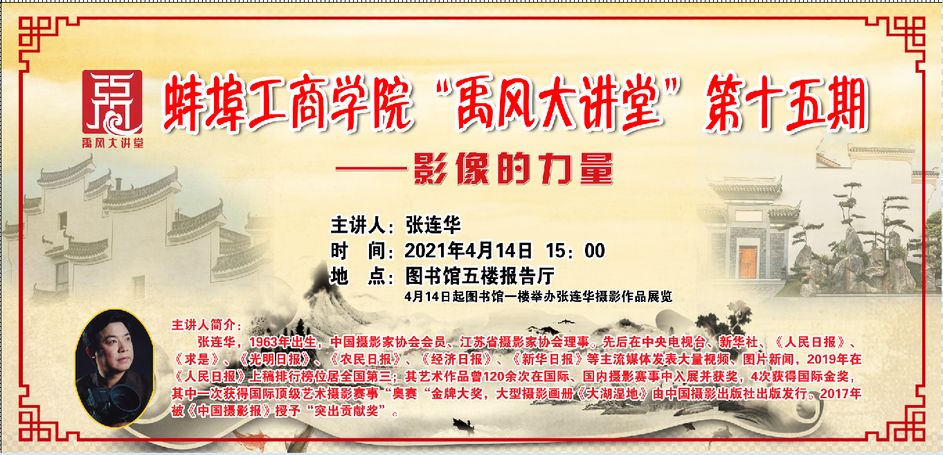 主讲人简介:张连华,1963年出生,中国摄影家协会会员、江苏省摄影家协会理事。先后在中央电视台、新华社、《人民日报》《求是》《光明日报》《农民日报》《经济日报》《新华日报》等主流媒体发表大量视频、图片新闻,2019年在《人民日报》上稿排行榜位居全国第三;其艺术作品曾120余次在国际、国内摄影赛事中入展并获奖,4次获得国际金奖,其中一次获得国际顶级艺术摄影赛事“奥赛“金牌大奖,大型摄影画册《大湖湿地》由中国摄影出版社出版发行。2017年被《中国摄影报》授予“突出贡献奖”。