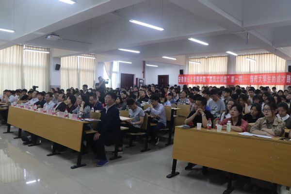 开讲仪式后,中国人才研究会副会长、博士后导师吴德贵教授应邀作为首期讲座的主讲嘉宾,为我院师生作题为“当代大学生的成才路径寻觅”专题讲座。他与现场师生分享了“北京大学教授精彩演讲、中国高等教育总体状况考量、培养创新人才四维模式结构、国内外著名学者精辟话成功、吴教授本人关于成功的见解、古今中外典范人物成功秘诀”等观点案例,接着从“理想加梦想、学习加思考、左脑加右脑、知识加能力、总结加规划、智商加情商”等六个方面指出了大学生成才的路径。