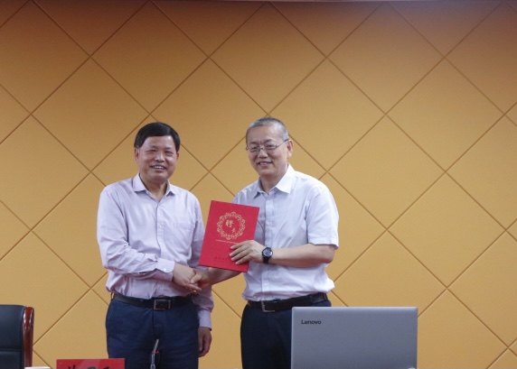 讲座开始前,校长刘福成为苏君阳教授颁发beat365中文官方网站兼职教授聘书。