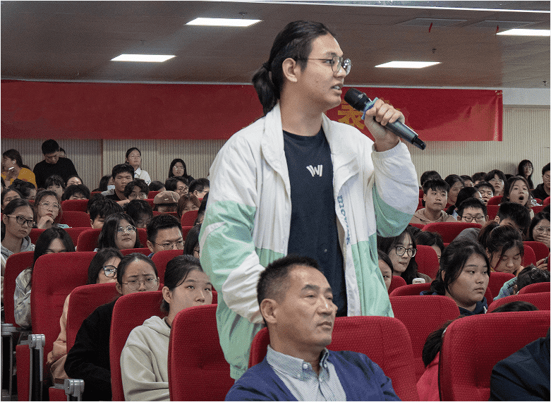 在交流互动环节,一些学生还积极提问了关于专业学习和人生成长的问题,也得到了宋教授的充分解答。在一个半小时的讲座期间,师生们聚精会神,沉浸在这场知识盛宴之中。虽然图书馆五楼两个报告厅的座位已经早早坐满,但大家热情不减,很多同学为了聆听宋教授的讲座,甚至席地而坐或倚墙而立。现场氛围十分热烈,体现了学校的优良校风。讲座之后,大家纷纷表示,听了宋教授的讲解,对营销竞争有了全新的认识和更深入的理解,下一步将努力把今天的所学所得运用到实际工作生活中去。