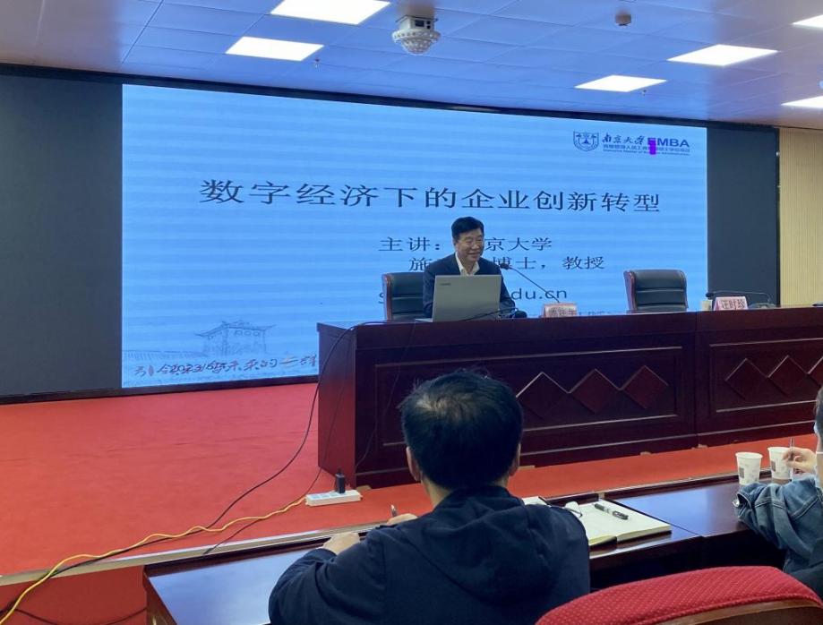 5月4日下午,学校“禹风大讲堂”第二十一期在图书馆五楼报告厅举行。由厦门大学经济学博士,南京大学、对外经济贸易大学教授,博士生导师,国务院政府特殊津贴专家,对外经济贸易大学原校长,南京大学原常务副校长施建军作题为《数字经济下的企业创新转型》的专题讲座。校党委副书记方敏和全体中层干部参加讲座,讲座由汪时珍副校长主持。