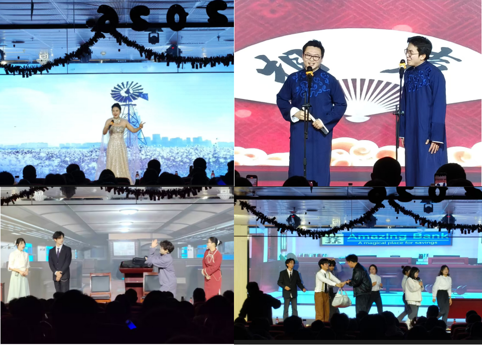 晚会紧扣青春与强国两大主线,节目兼具青春风采与家国情怀,内核鲜明、意蕴深远。开场舞《WHAT IS LOVE》活力四射,以灵动舞步尽显当代青年朝气蓬勃的风貌;歌曲《芦花》婉转悠扬,《关键词+在你身边+ALWAYS ONLINE》温情串烧,细腻情感随旋律流淌,尽显学子赤诚本心;相声《八扇屏》以传统曲艺传递文化自信;小品《课间十分钟》《史上第一大劫案》立足青春视角,于欢笑中传递成长感悟;情景剧《名门佳缘》以轻喜剧形式,映照青年的价值坚守与人生抉择。舞台剧《青春未来式》更是点睛之作,将小我理想与家国发展相融,生动展现经金学子深耕专业、矢志金融报国、助力经济强国的远大志向,让青春理想与时代脉搏同频共振。