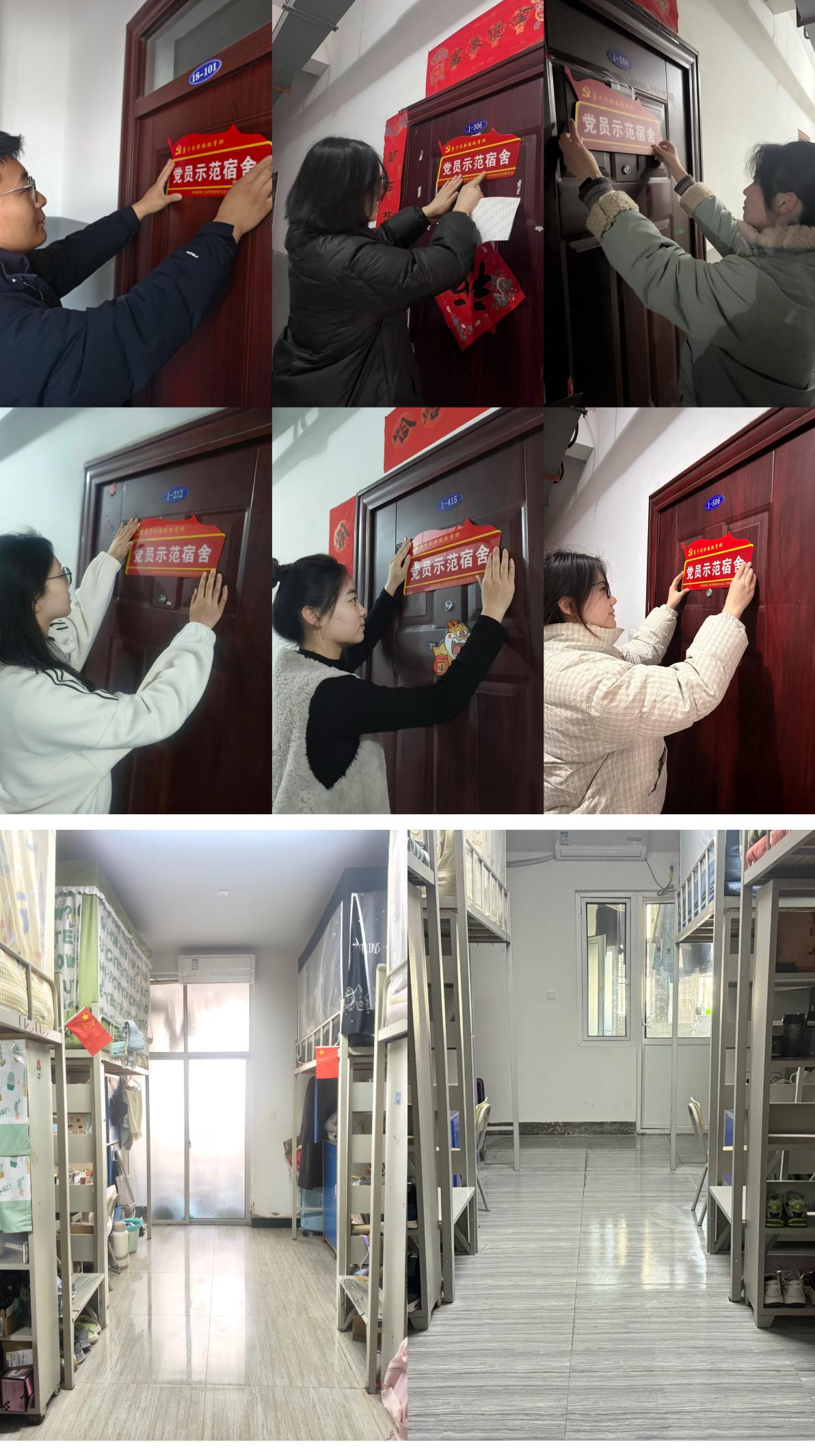 “党员示范宿舍”标准明确要求学生党员在宿舍门显著位置亮明身份、自觉接受广大师生监督,以思想引领作表率,将宿舍纳入党员发展考察范围;日常起居中恪守内务规范,保持床铺规整、物品有序、环境洁净,落实垃圾日清要求,严守安全用电底线,严禁使用违禁电器与违规接线;积极配合各类检查,以文明言行展现党员风采,时刻牢记自身身份,充分发挥党员先锋模范作用。这不仅仅是一个标牌,更是一面旗帜,代表着责任与担当。它时刻提醒党员严于律己、以身作则,在平凡日常中彰显先进本色,于细微之处践行初心使命,持续带动身边同学共同营造文明和谐、积极向上的校园生活氛围。