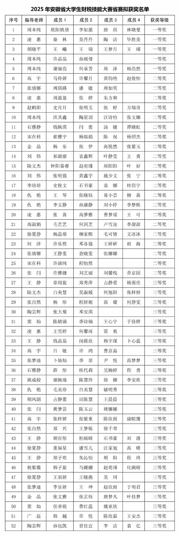2026年1月5日,由安徽省教育厅主办,安徽财经大学承办的2025年安徽省大学生财税技能大赛成绩公布。beat365与全省30余所本科院校近 1300支队伍同台竞技,最终共52支队伍获奖,其中一等奖5项,二等奖21项,三等奖26项,总获奖数位居安徽省第二。