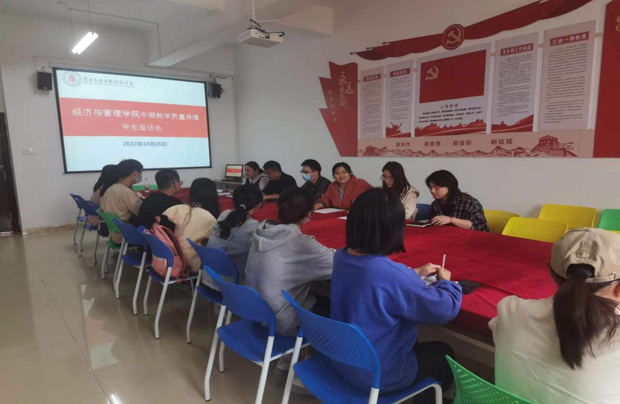 万老师就召开本次座谈会的目的和意义以及会议安排作了说明,并鼓励同学们放下包袱,就开学至今各个任课老师的教学情况、上课状态、师德师风等问题畅所欲言。座谈会上,学院领导认真听取了同学们反映的问题,并给予耐心解答,鼓励同学们要积极主动地与老师加强联系,及时向老师反馈课堂问题。