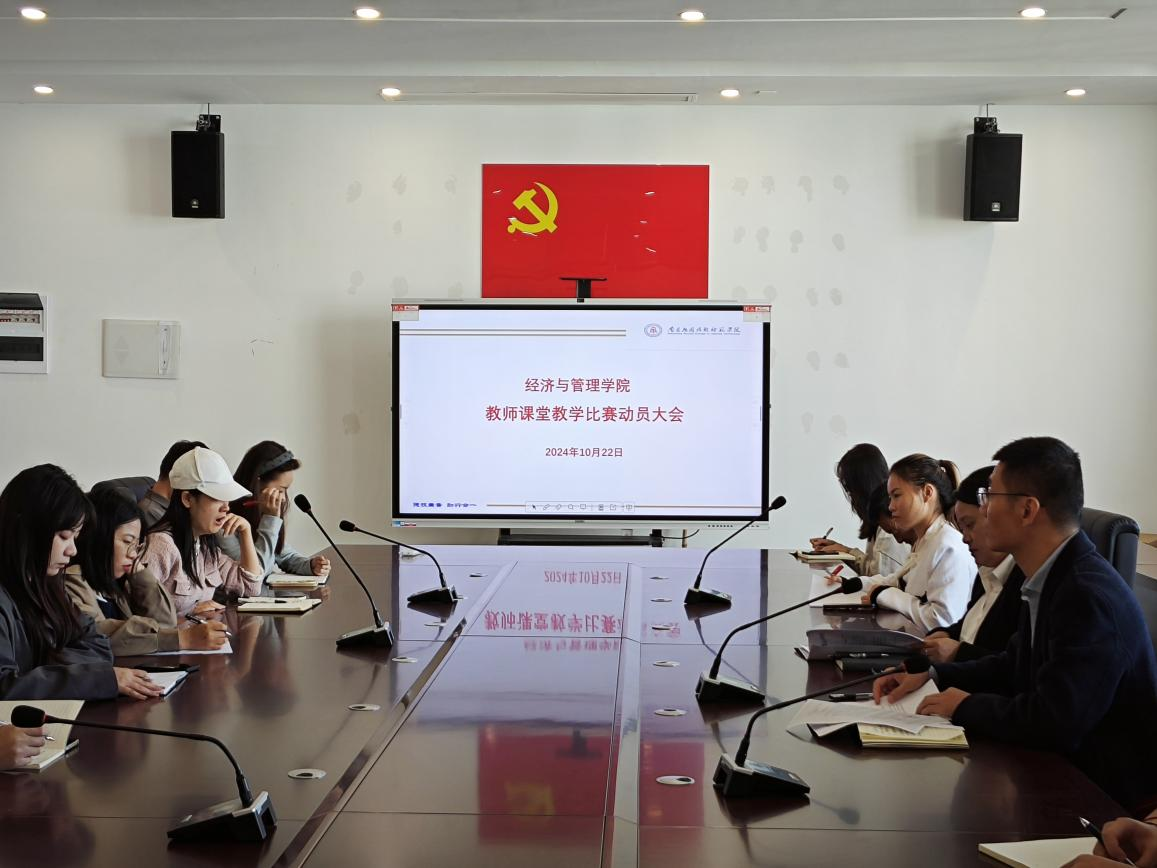 2024 年 10 月 22 日星期二下午,pg国际电子网站在沁苑8实506会议室召开了教师课堂教学比赛动员大会,会议由学院副院长袁江波主持,院长胡梨花出席会议,学院全体专任教师参加会议。