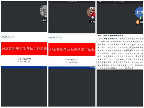 为深入落实省教育厅和学校相关工作要求,切实推进毕业生就业工作,10月28日下午,pg国际通过线上会议平台召开了2026届特困毕业生就业帮扶见面会。学院主要领导、全体毕业班辅导员、毕业生指导老师及所有困难毕业生同学齐聚云端,共同参与了此次会议。