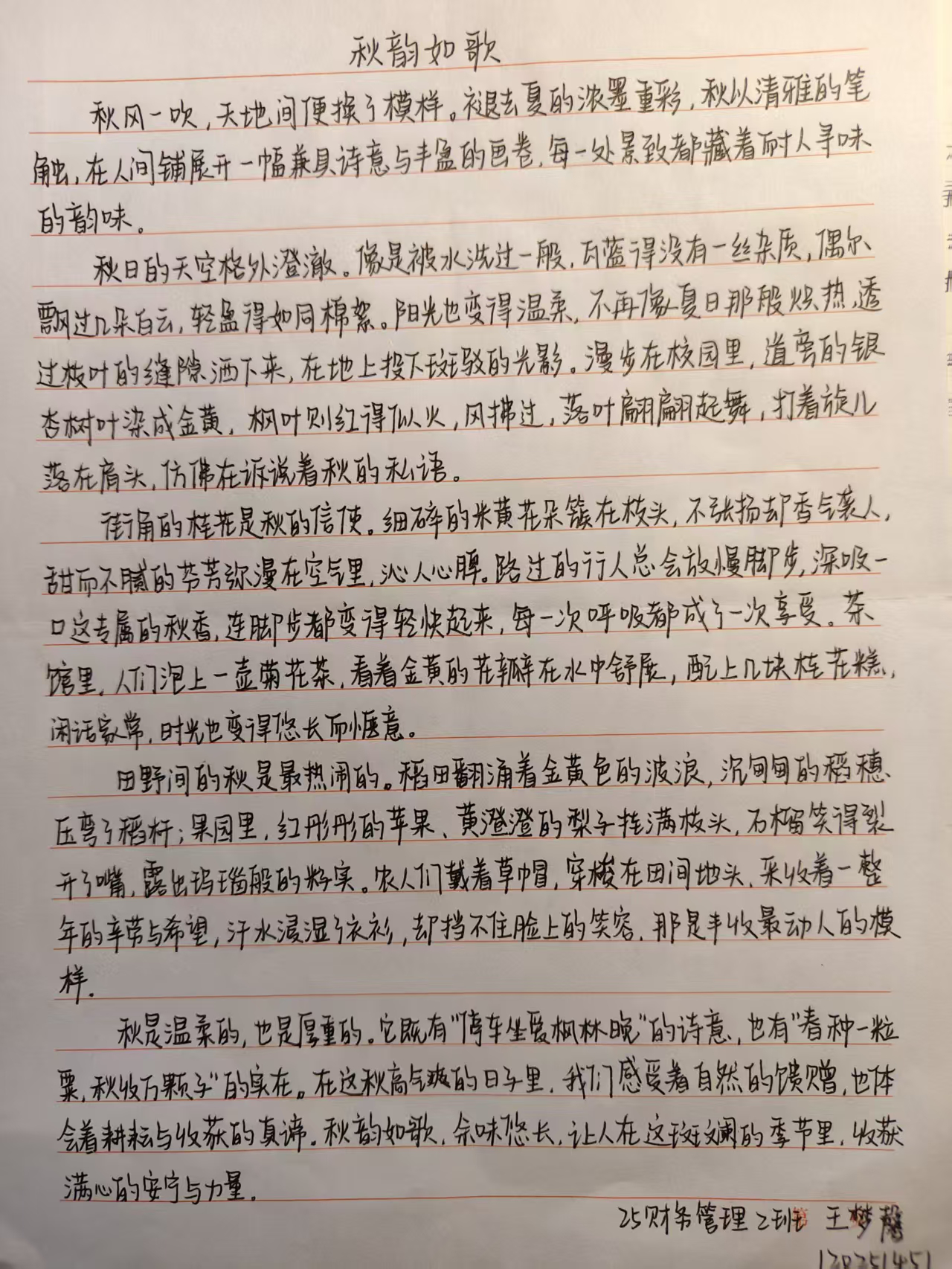 “本次“一叶知秋,落笔成诗”主题征文,以写作为核心抓手,着力推动学生将“爱读书、读好书”的阅读积累,转化为“善表达、勤动笔”的写作实践——既实现从知识输入到思想输出的关键跃升,也完成读写能力的闭环训练。活动围绕“秋”这一内涵丰富的主题,引导学子在文字中挖掘秋的文化意蕴、品味秋的生活质感,进而增强文化自信与自我认同感,实现思想淬炼与写作技能的双重突破。