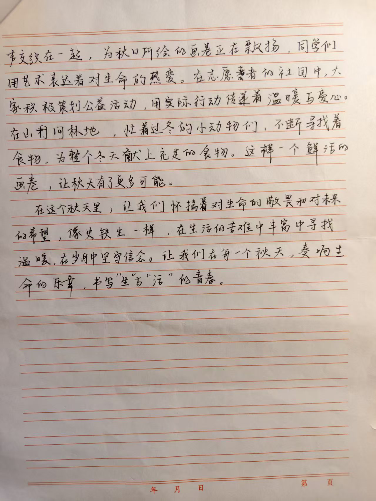 秋天,是收获的季节,亦藏着引发深思、激发灵感的契机。为深入推进青年学生读书行动,丰富校园文化生活,鼓励学子们观察自然之秋、感悟生活之味、抒写心中之声,pg国际电子网站特此开展“一叶知秋,落笔成诗”作文评选活动,邀学子共赴这场秋日文字之约!