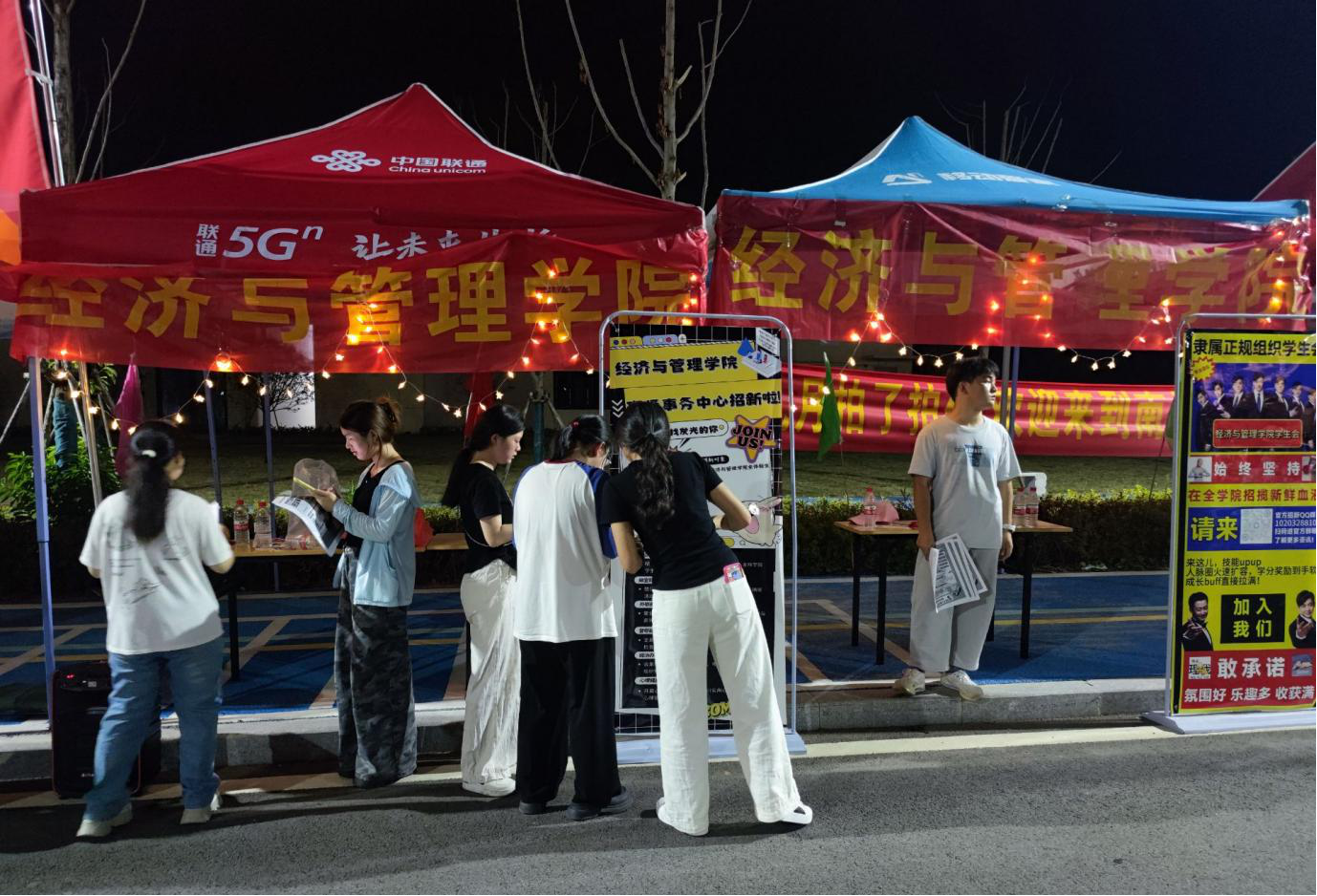 招新前期,学生会通过学院官方公众号、班级通知等渠道发布招新公告,详细说明办公室、组织部、策划部、学科竞赛部、新媒体中心五大部门的职能定位与招募要求。同时,在新生宿舍周边布设招新帐篷及宣传海报,安排学生骨干现场答疑,为新生提供全面的咨询服务。